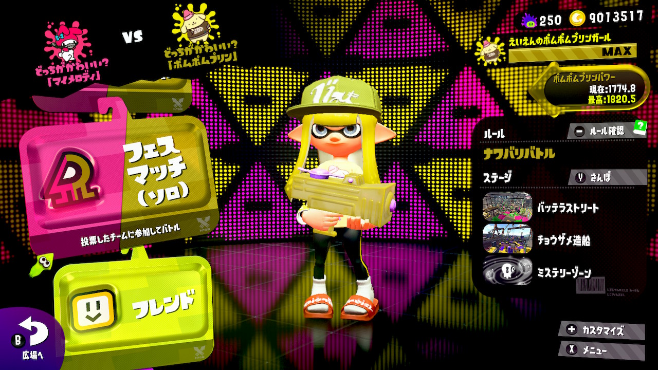 スプラトゥーン2 第12回フェス どっちがかわいい マイメロディ Vs ポムポムプリン 18年5月26日 土 15 00 27日 日 15 00開催 アサミの日記